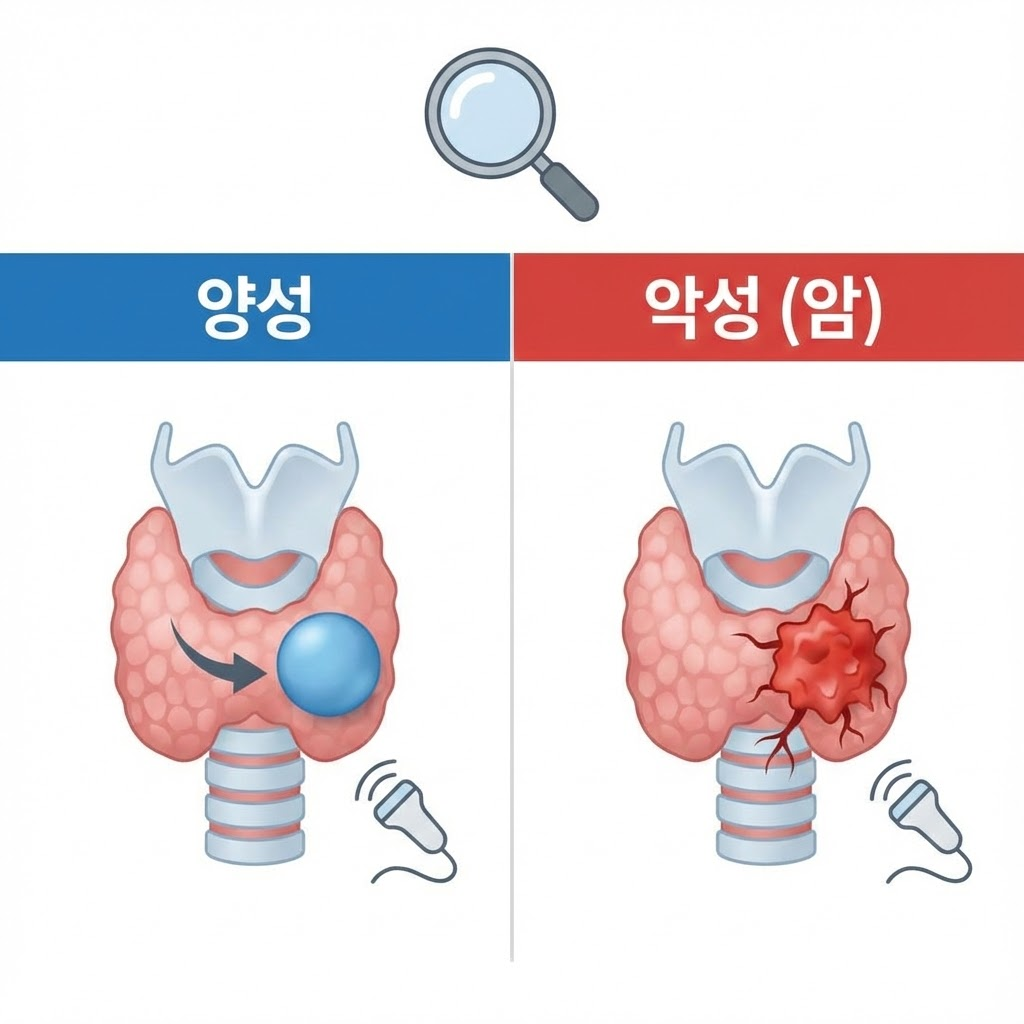 건강검진에서 '갑상선 결절'이 발견되었다고 해서 모두 암은 아니며, 약 5~10% 정도만이 악성(암)으로 진단됩니다.