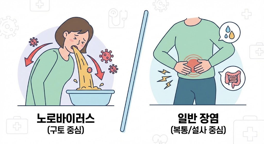 | 구분 | 노로바이러스 | 일반 세균성 장염 |