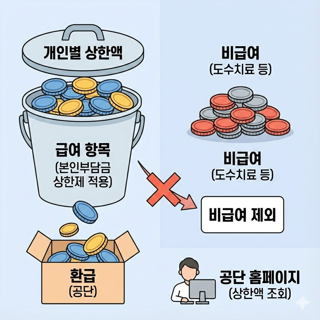 - 확인 방법: 건강보험공단 홈페이지에서 개인별 상한액 조회 가능