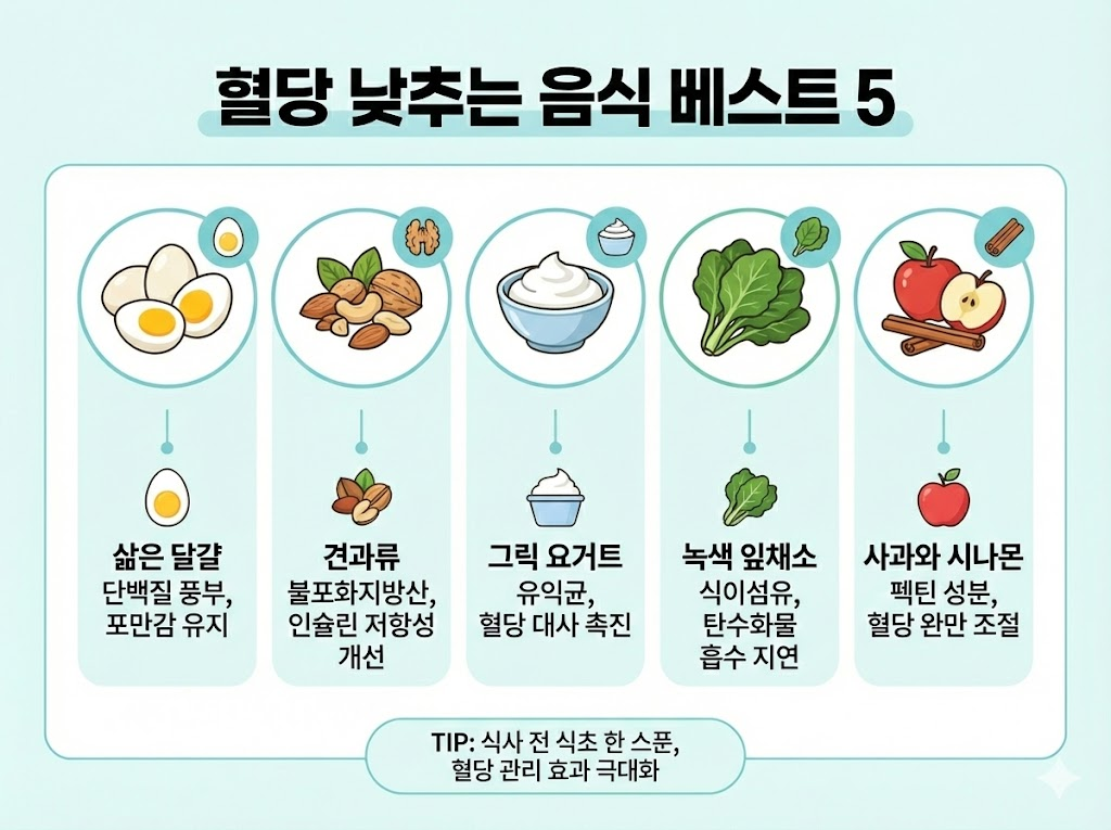 2026년 최신 의학 정보를 반영하여 혈당을 즉각 낮추는 음식 5가지와 관리 팁을 정리했으니 지금 바로 아침공복 혈당 확인하기를 통해 건강을 지키세요.