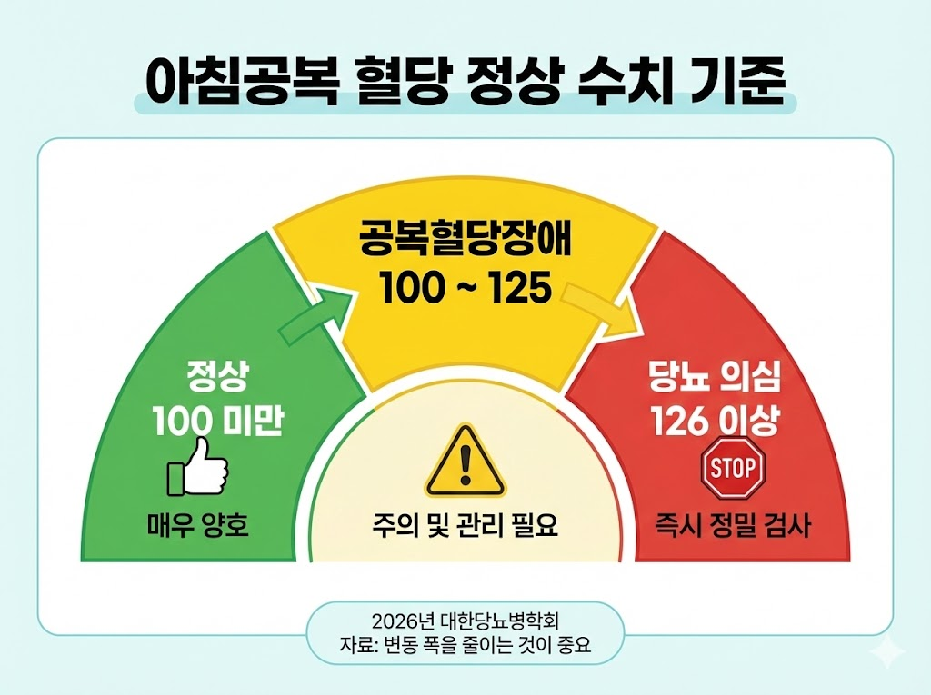정상적인 공복 혈당은 100mg/dL 미만으로 유지되어야 하며 이를 초과하면 공복 혈당 장애를 의심해야 합니다.