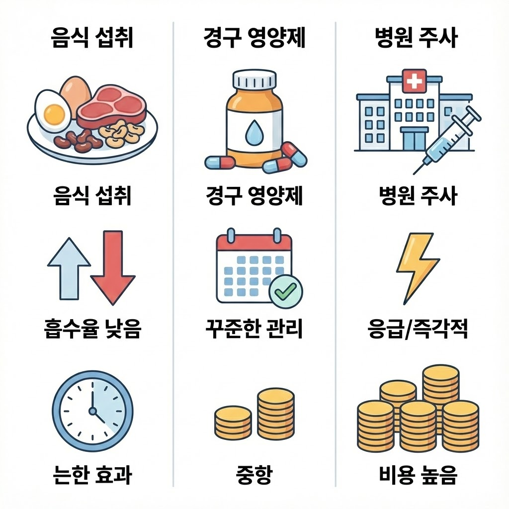 4. 음식 vs 영양제 vs 주사제 비교