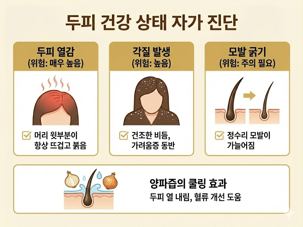 양파즙 효능을 극대화하기 전 현재 자신의 두피 상태를 정확히 파악하는 과정은 맞춤형 관리를 위해 반드시 거쳐야 하는 필수 단계입니다. 두피 환경이 악화되면 아무리 좋은 영양소를 섭취해도 모근에 제대로 전달되지 않아 예방 효과가 반감될 수 있습니다.