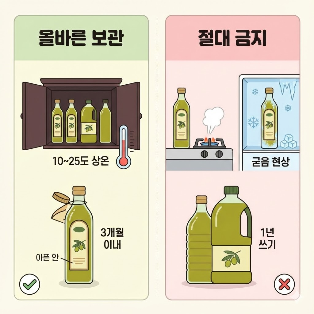 | 보관 장소 | 서늘하고 어두운 찬장 | 가스레인지 옆, 창가 |