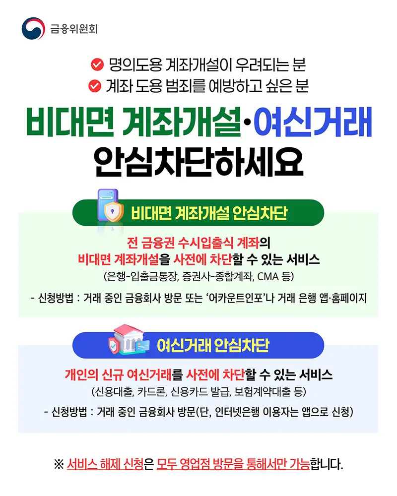 - 여신거래 안심차단 서비스로 불법 해지·출금 차단