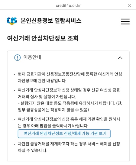 여신거래 안심차단 서비스 조회 가능한가요?│내 계정 상태 확인하는 꿀팁