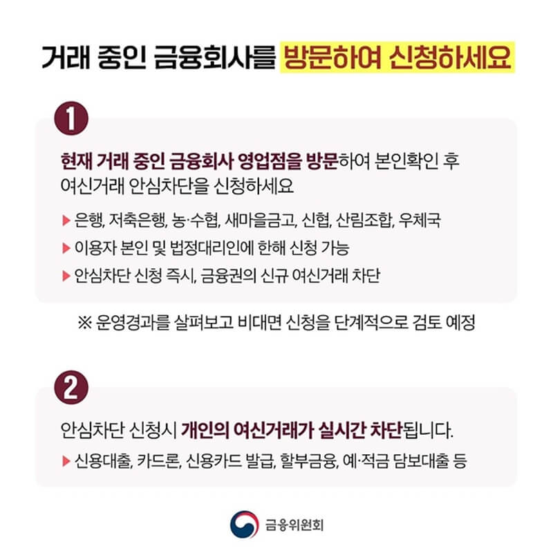 - 차단 범위: 대출, 카드 발급, 할부금융 포함