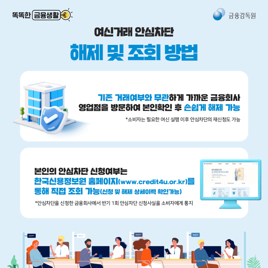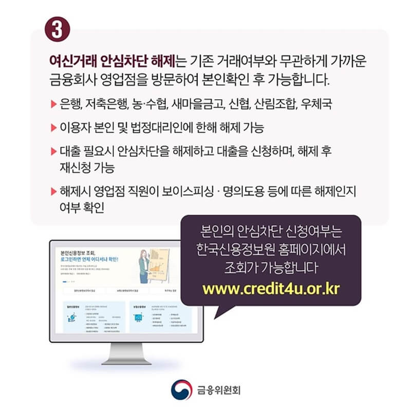 - 해제 후 대출, 카드발급 등 거래가 바로 가능하므로 사전에 준비를 마쳐두세요.