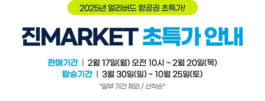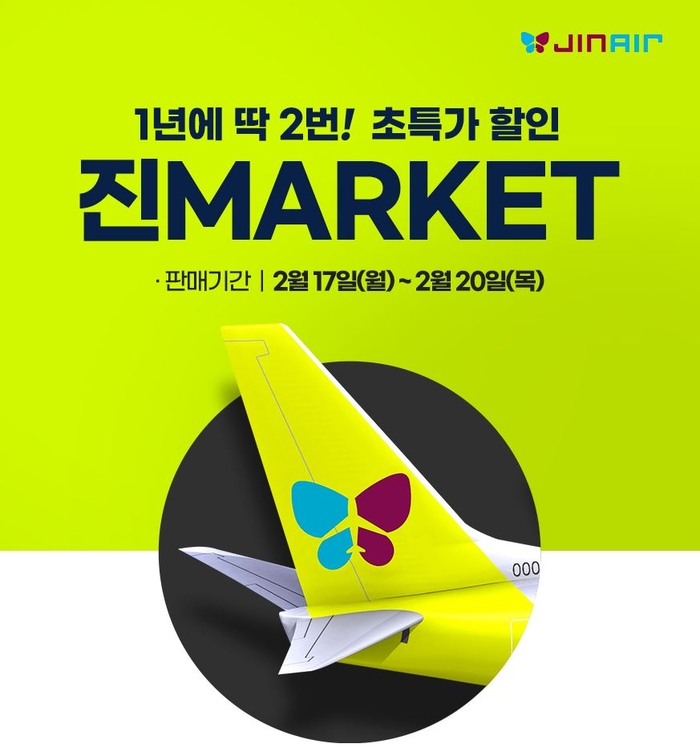 진에어가 2025년 상반기 최대 규모의 '진마켓' 특가 프로모션을 진행합니다.