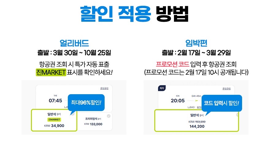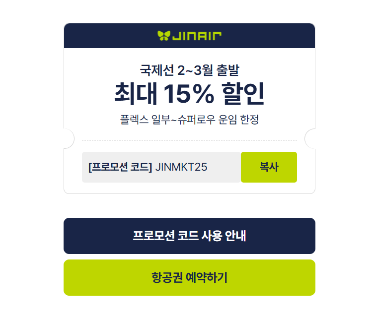- 임박 항공편의 경우 별도 프로모션 코드 입력 필요