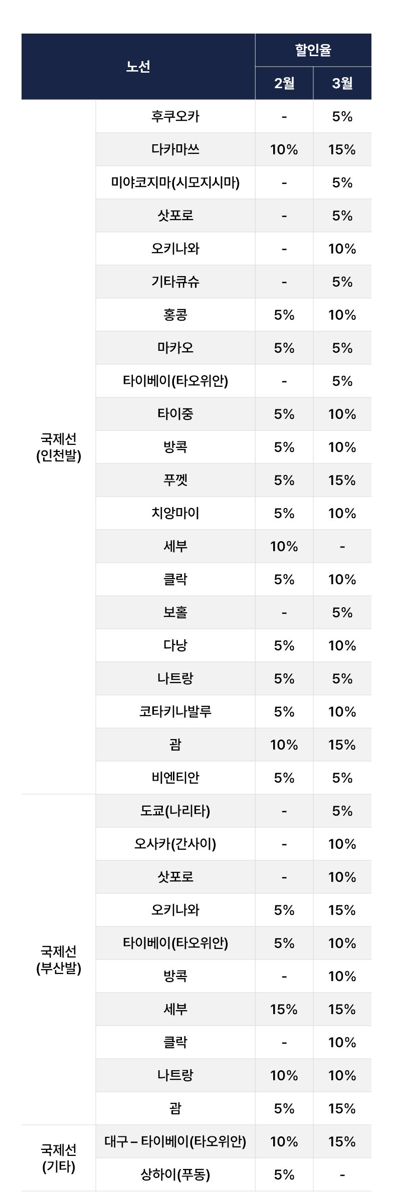국제선 할인 노선