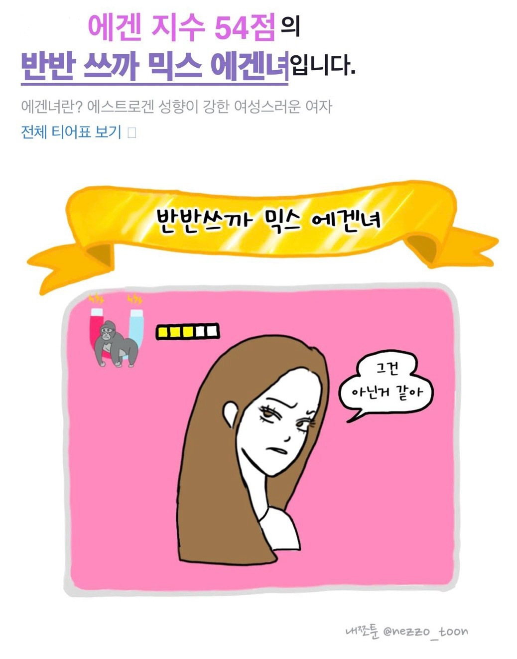 최근 한가인, 찰스엔터 등 연예인들까지 언급하며 Z세대 사이에서 폭발적인 인기를 끌고 있는 테토녀와 에겐녀 구분법! 많은 분들이 "나는 과연 어떤 타입일까?"라는 궁금증을 가지고 계실 텐데요.