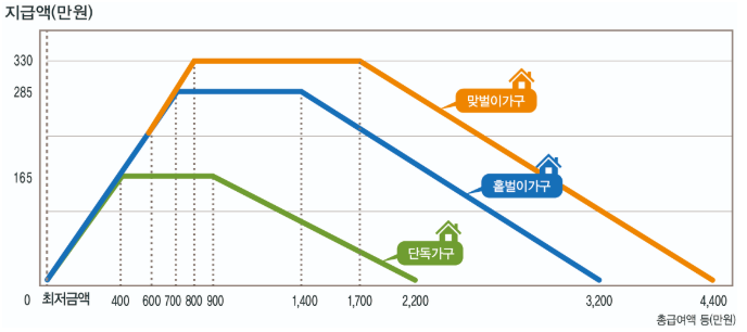 | 홑벌이 가구 | 3,200만 원 미만 |