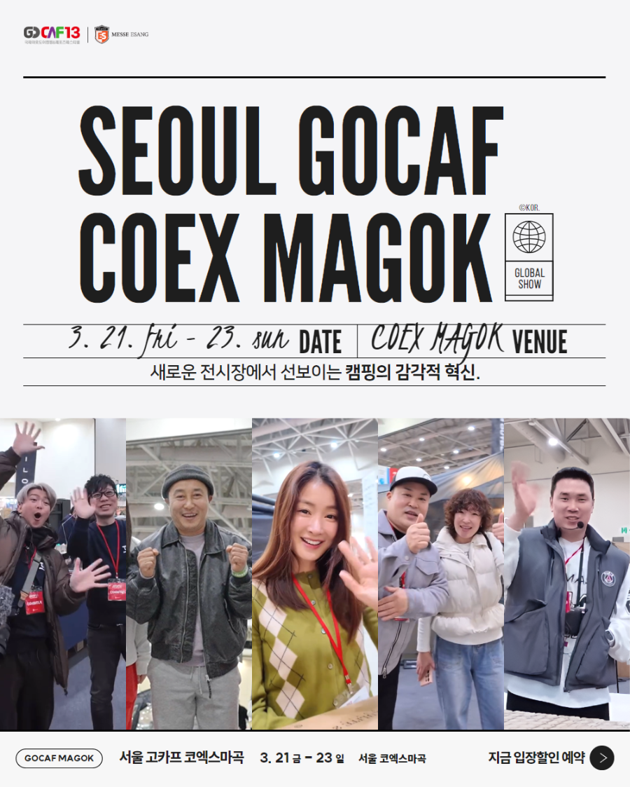 2025 서울 고카프 코엑스마곡이 오는 3월 21일부터 23일까지 개최됩니다. 캠핑과 레포츠를 사랑하는 분들에게 이보다 더 좋은 기회는 없을 것입니다.