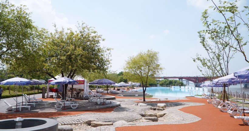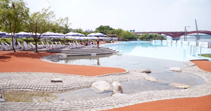 양화 수영장은 수심 0.8m의 단일 풀로 구성되어 있어 어린이부터 성인까지 안전하게 이용할 수 있습니다. 실개천 형태로 한강을 따라 길게 조성되어 있어 인피니티 풀과 같은 시각적 효과를 제공하며, 특히 일몰 시간대에는 환상적인 한강 뷰를 감상하실 수 있습니다.