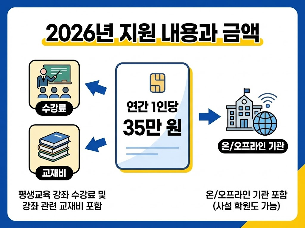 | 평생교육 강좌 수강료 | 연간 최대 35만원 | 온/오프라인 기관 포함 |