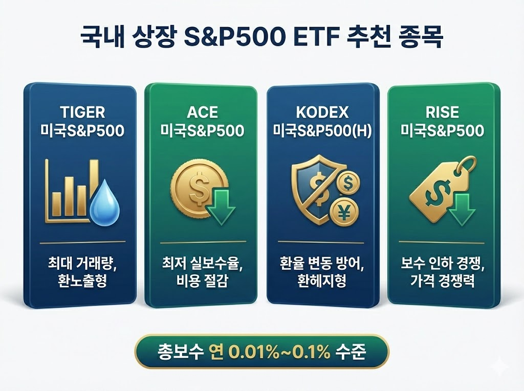 | 국내 상장 S&P500 ETF 비교 추천 및 수수료 절감 가이드 (2026년) (0) | 2026.01.22 |